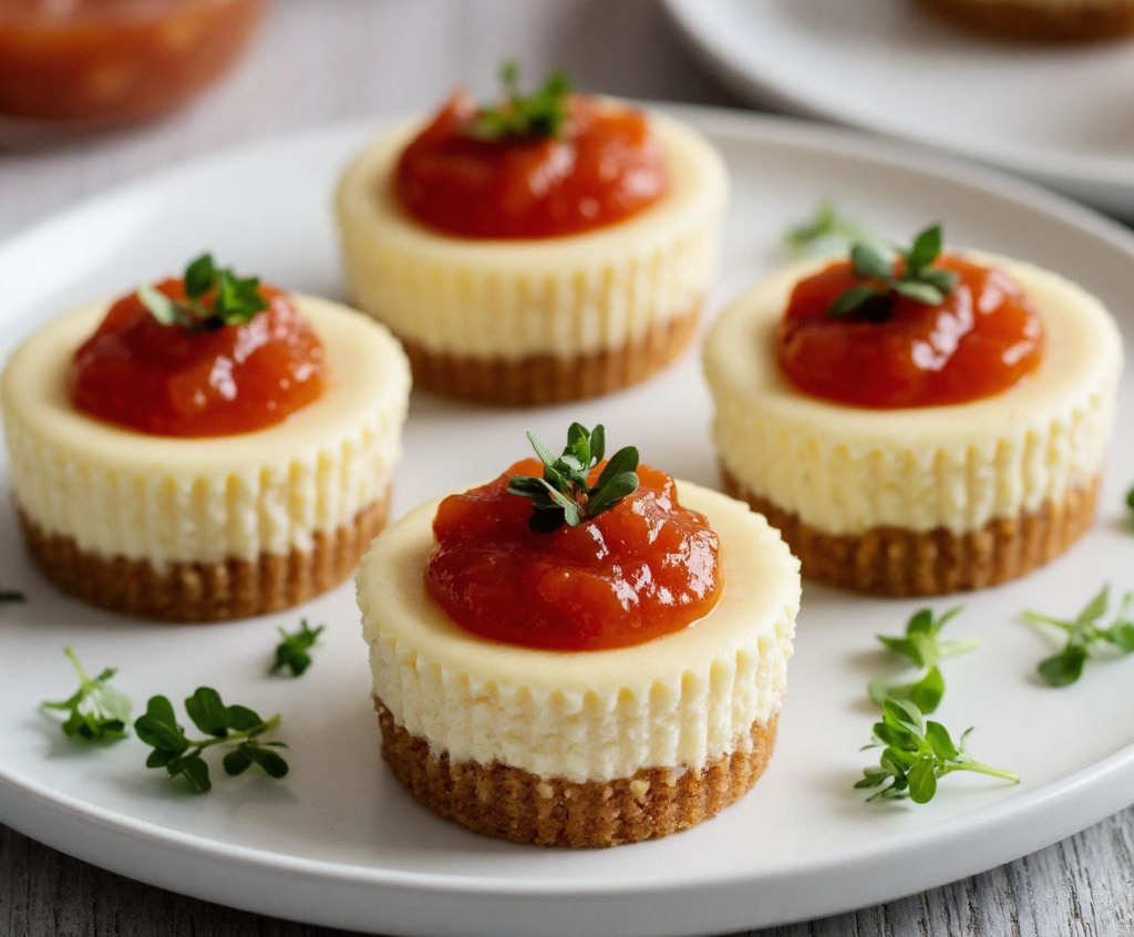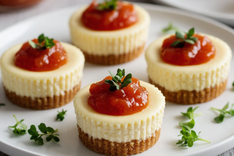 Беру сливочный сыр, пармезан и муку — и готовлю несладкие мини-чизкейки с томатным мармеладом, которые гости просят на каждом празднике. Это гениально простое и невероятно вкусное блюдо, идеальное для фуршета или уютного застолья. Его необычность в том, что соленая основа с ореховым вкусом и пряностями идеально сочетается с нежной сырной начинкой и кисло-сладким томатным мармеладом. Получается обалденная вкуснятина: хрустящая ароматная основа, бархатистый сливочный сыр с базиликом и пикантный мармелад, который подчеркивает все достоинства закуски. Гости были в восторге и наперебой просили рецепт.