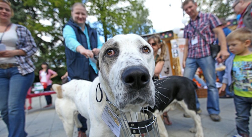 Жители Подольска пришли на православный молебен вместе со своими домашними любимцами. Мероприятие прошло в Ильинском храме деревни Лемешево в честь Дня защиты бездомных животных.