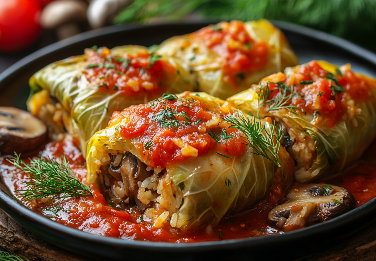 Подсела в Великий пост на голубцы с рисом и грибами в томатном соусе. Это сытное и ароматное блюдо, которое ничуть не уступает классическим мясным голубцам, а по нежности и сочности даже превосходит их.