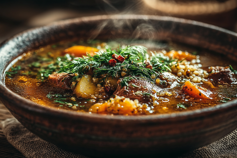 «Эх, сейчас бы супчику горяченького, да с потрошками!» — мечтал Глеб Жеглов. Эта похлебка — именно то блюдо: наваристое, сытное и невероятно душистое благодаря пшену и овощам, томленным на вытопленном сале.