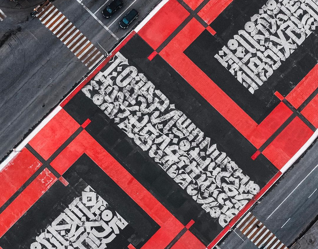 Крест из фрагментов манифеста Казимира Малевича, как писал News.ru, Покрас Лампас с помощью волонтёров нарисовал на площади более шести тысяч квадратных метров во время фестиваля уличного искусства «Стенограффия». Однако картина долго не продержалась: уже через несколько дней дорожные рабочие начали укладывать поверх неё асфальт.