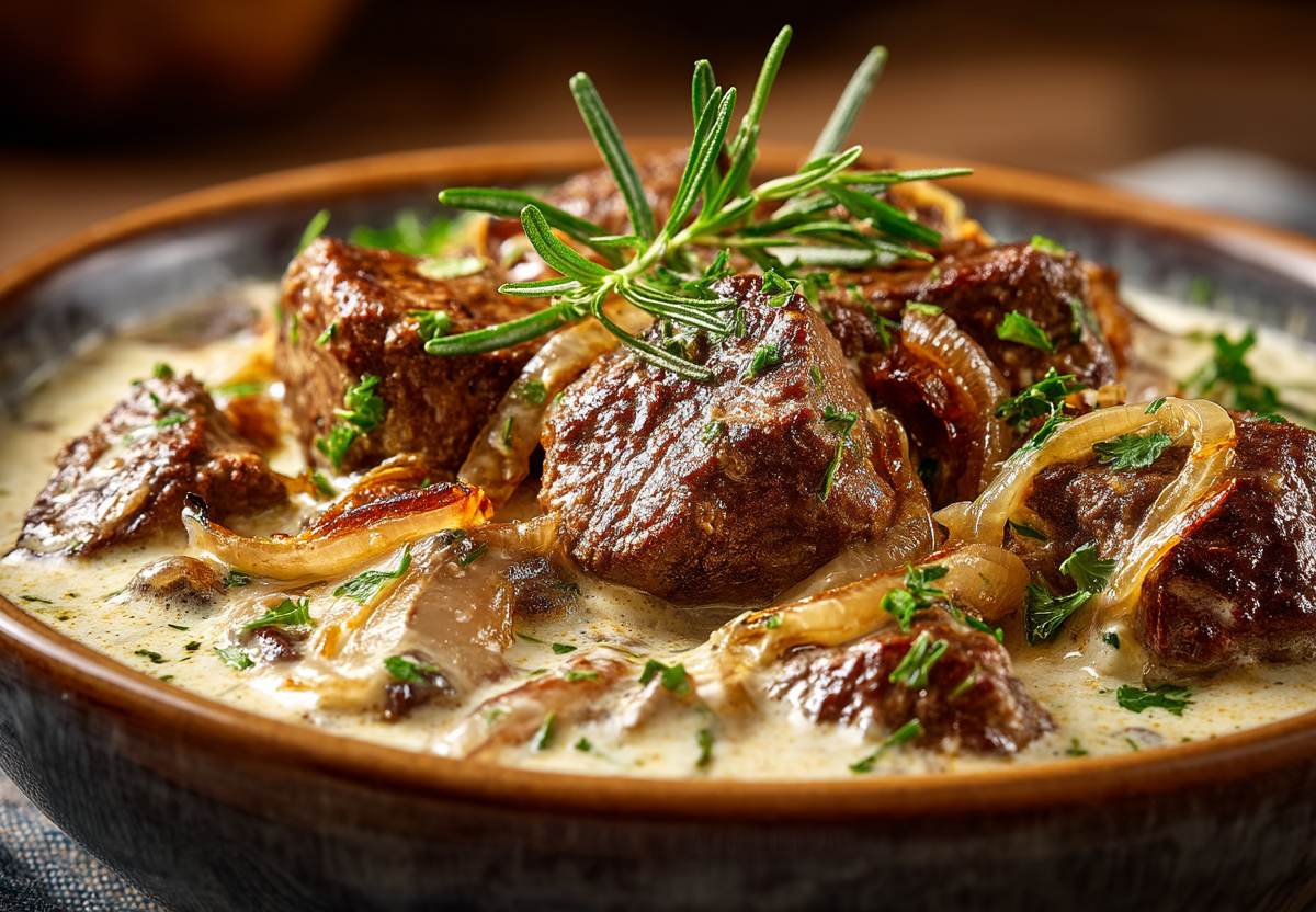 Когда хочется чего-то основательного, настоящего, без лишних ухищрений, на помощь приходит эта классика. Всего три основных компонента — почки, лук, сметана — в результате томления создают гармоничный, глубокий и очень сытный вкус, знакомый многим с детства.