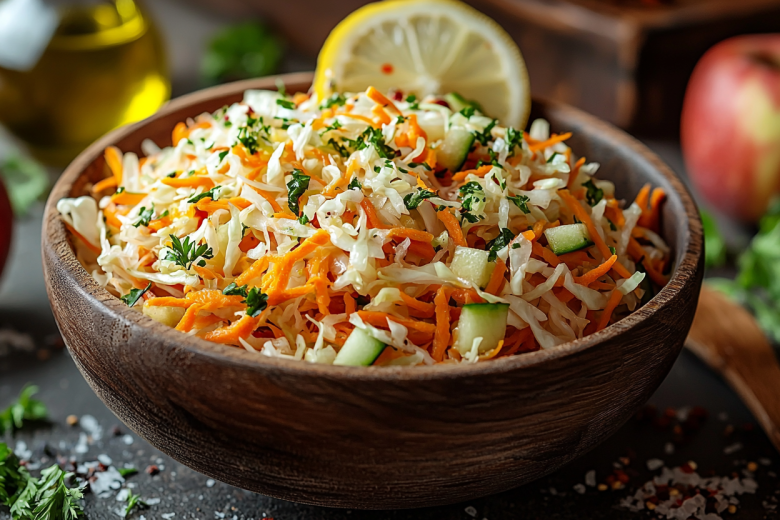 Свежая капуста и огурец содержат много воды и кремния, увлажняя и повышая упругость. Морковь — источник бета-каротина, который преобразуется в витамин А, борющийся с воспалениями и шелушением. Яблоко дает витамин С для синтеза коллагена и антиоксиданты.