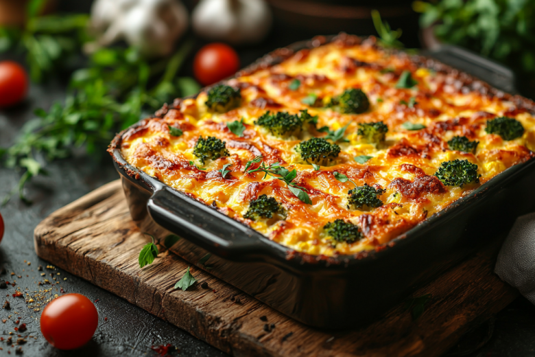 В процессе запекания брокколи пропитываются сливочной смесью, становясь мягкими, но сохраняя легкий хруст, а сверху их покрывает золотистая, ароматная шапка из расплавленного сыра.
