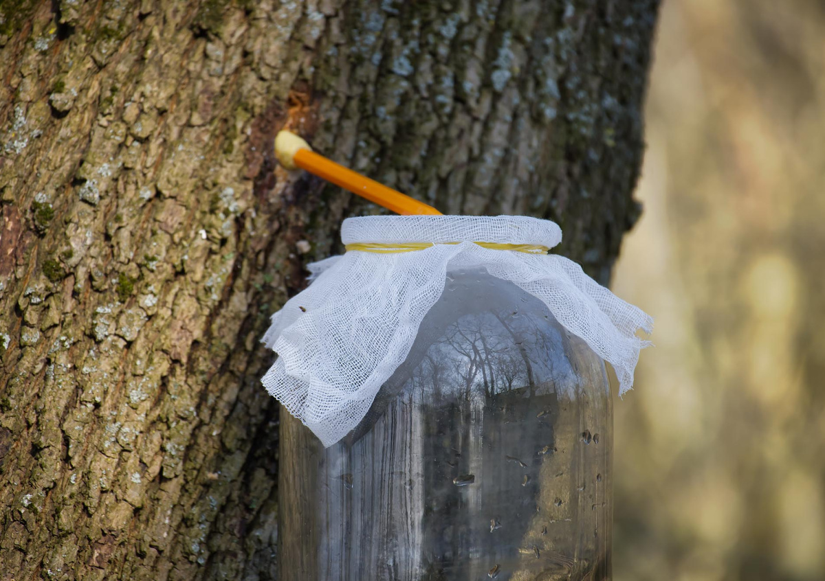 Это прозрачная сладковатая жидкость, которую весной получают из стволов клена — чаще всего сахарного или серебристого. Сбор сока начинается, когда температура днем поднимается выше нуля, а ночью опускается ниже. Такие перепады активизируют движение жидкости от корней к верхушке дерева. Чтобы собрать сок, в коре клена делают небольшой надрез или отверстие, вставляют трубочку и собирают капающую жидкость в емкость.
