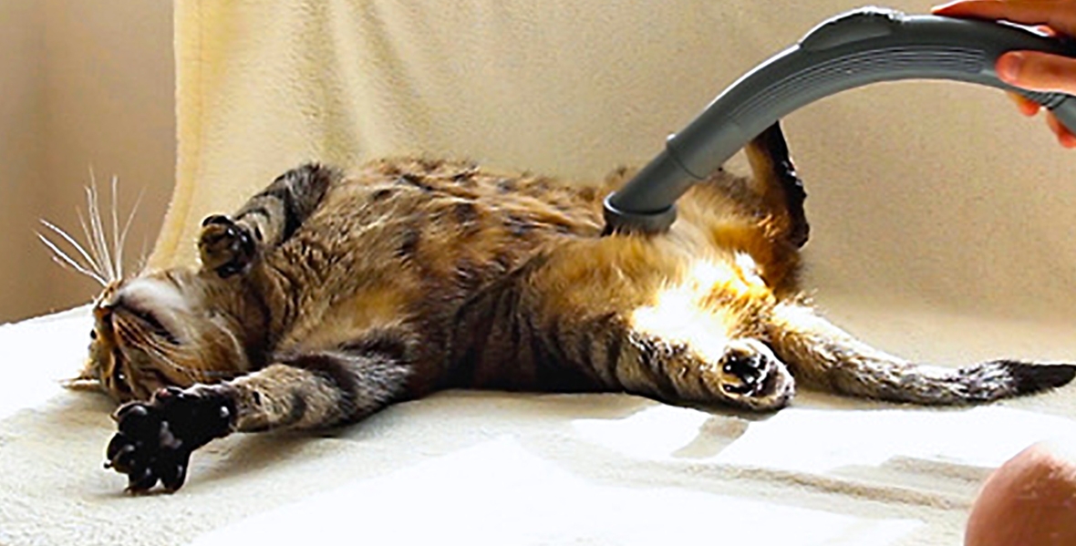 Отсутствием у животного страха перед бытовой техникой воспользовались хозяева и пропылесосили кота. Пользователи соцсетей сочли, что это удобнее, чем чистить квартиру от шерсти.