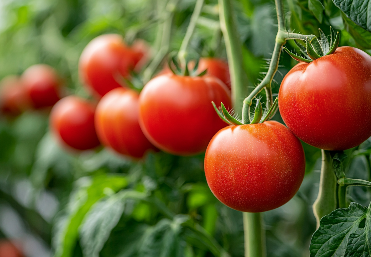 Для внекорневой подкормки используйте борную кислоту (1 г на 1 л воды) — это предотвратит опадение цветков и улучшит завязываемость плодов. В жару добавляйте в воду для полива гумат калия (по инструкции) — он помогает растениям переносить стресс и продолжать плодоносить. Важно поливать томаты теплой водой строго под корень утром, избегая переувлажнения — в августе достаточно одного-двух поливов в неделю.