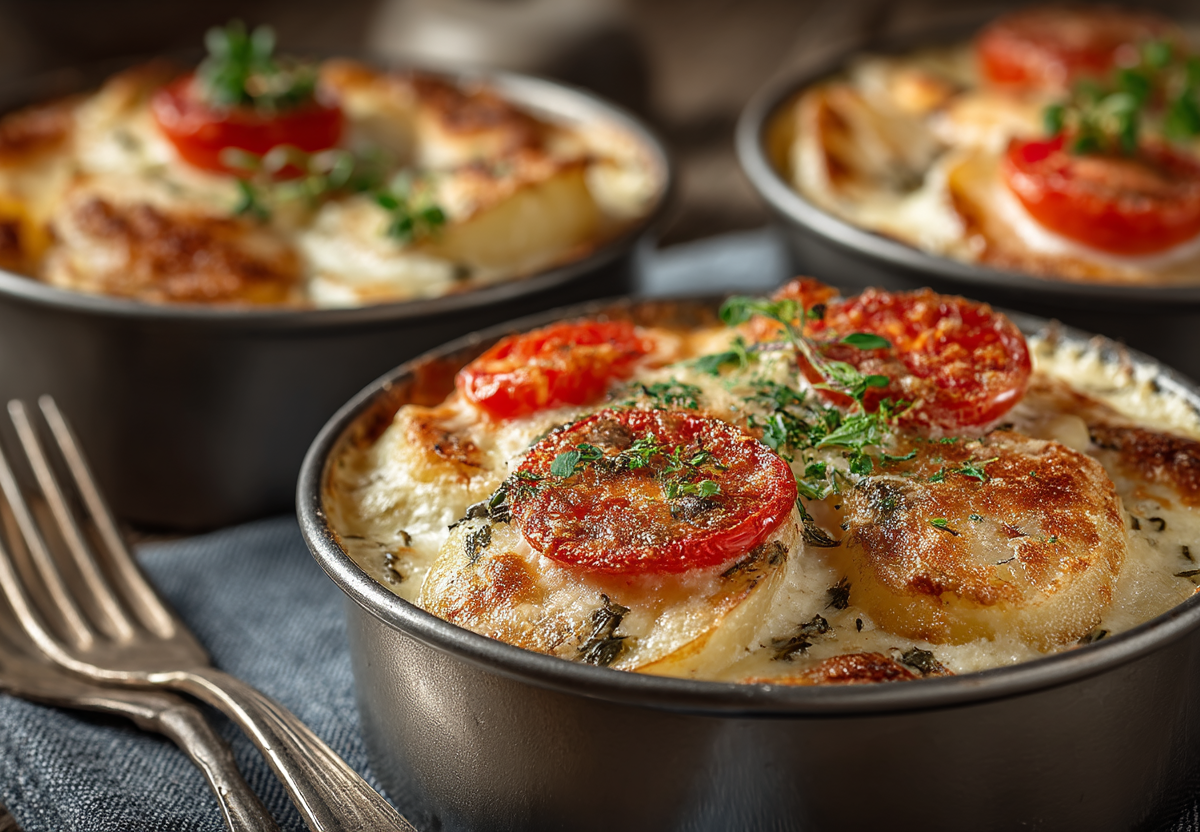 Запекайте в разогретой до 190°C духовке 20-25 минут до румяной сырной корочки. Подавайте горячим прямо в формочках, украсив зеленью.