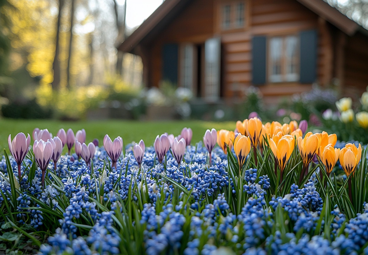 Весной, как только солнце прогреет землю, ваш сад оживет: сначала появятся крокусы всех оттенков — от белоснежных до лиловых, затем синие мускари и нежные хионодоксы, а следом — тюльпаны. Такой многоуровневый цветник будет радовать цветением с марта по май. Посадите под зиму — и весной увидите великолепный сад.