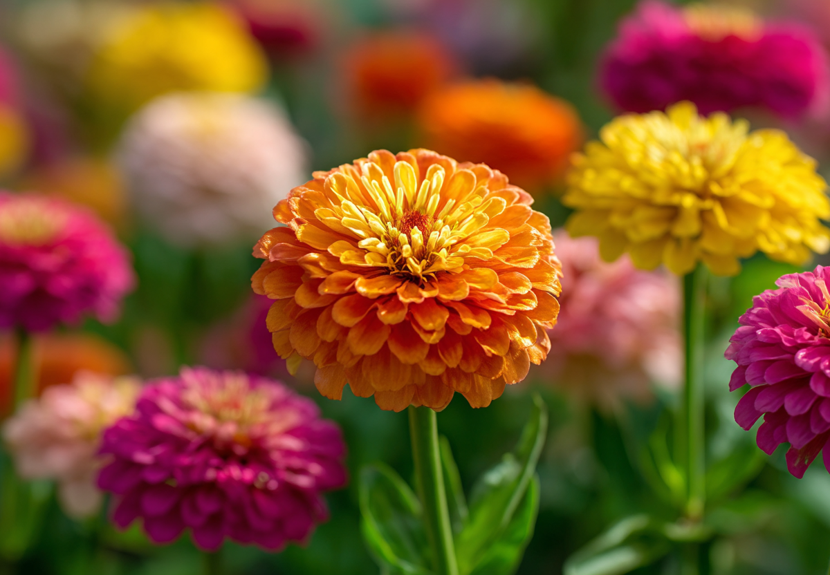 Одним из лучших кандидатов является цинния — настоящая королева клумб, которая при посеве в конце марта зацветает в июне и радует глаз до самых заморозков. Посадив ее, вы получите крупные шапки, которые цветут все лето и не боятся засухи. Ее крупные яркие соцветия самых разнообразных оттенков — от нежно-розовых до огненно-оранжевых и малиновых — достигают 10–15 см в диаметре и держатся на прочных стеблях до трех недель.