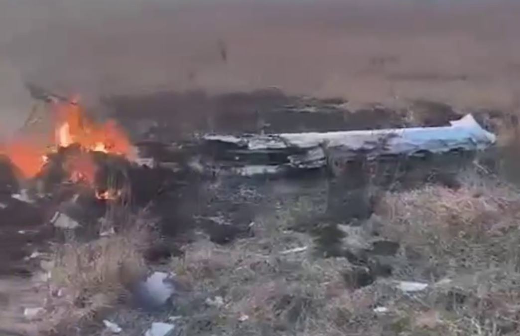 На кадрах с места происшествия видны горящие обломки корпуса и выжженная трава вокруг. Судя по фото, самолет полностью развалился, фрагменты воздушного судна разбросаны по всему полю.