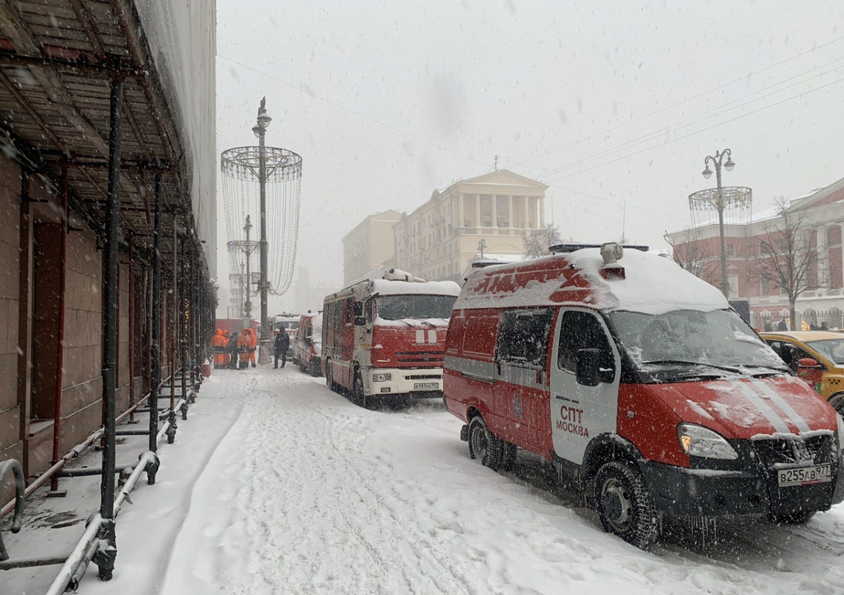 Очевидцы сообщали, что с крыши валил густой черный дым. На место пожара приехали несколько машин МЧС и полицейские. Территорию вокруг здания оцепили, а пожарные машины по Тверской улице стояли аж до отеля «Интерконтиненталь», передал корреспондент NEWS.ru с места событий.
