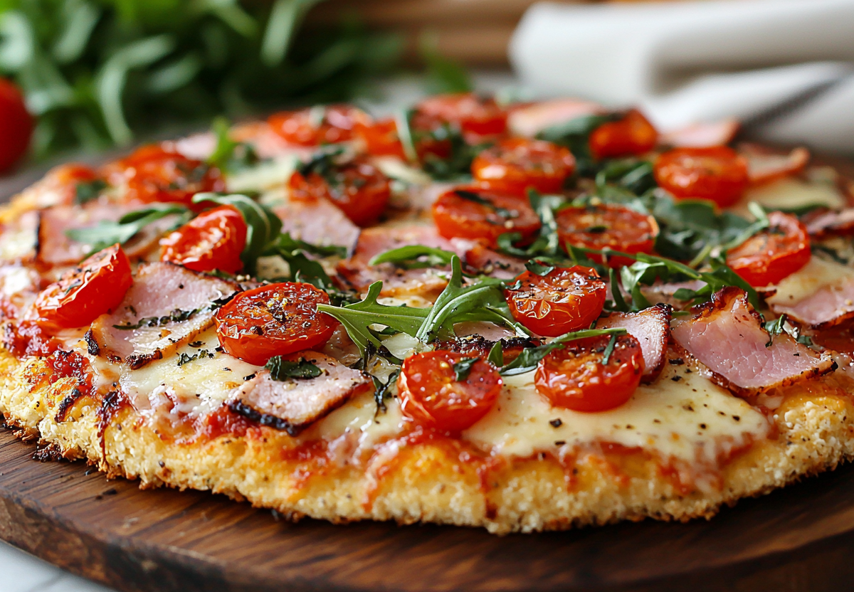 ПП-пицца из творожного теста с ветчиной! Улетный хит без вреда для талии. Идеальное решение для тех, кто следит за фигурой, но хочет насладиться вкусом настоящей пиццы! Нежная творожная основа, ароматная томатная паста и свежая начинка — всего 250 ккал в 100 граммах.
