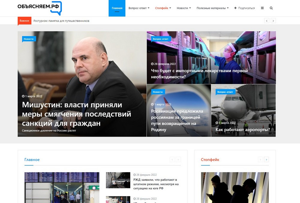 Правительству важно донести до людей актуальную, достоверную информацию, поэтому председателем правительства было принято решение о запуске информационного ресурса «Объясняем.рф». Новый портал станет источником проверенной, официальной и, что очень важно, оперативной информации, которая будет обновляться в режиме реального времени, — сказал он.