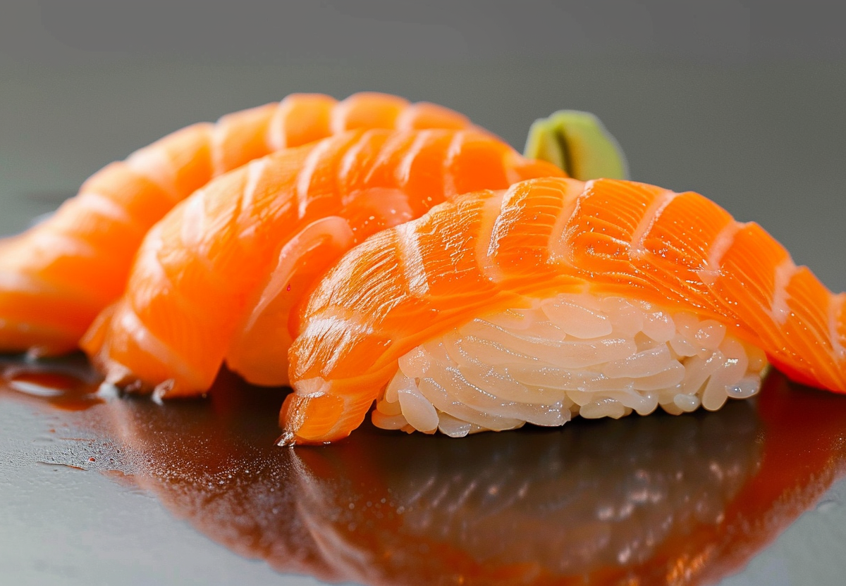 - На рисовую подушку выложить рыбу. Следите, чтобы стороны с васаби соприкасалась с рисом.