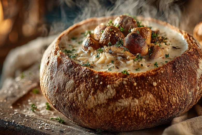 Этот суп доказывает, что для глубокого вкуса не обязательно нужен мясной бульон. Обжаренные шампиньоны с луком и карри создают насыщенную основу, а растолченный картофель придает бархатистую текстуру, которую так ценят в белорусской кухне.
