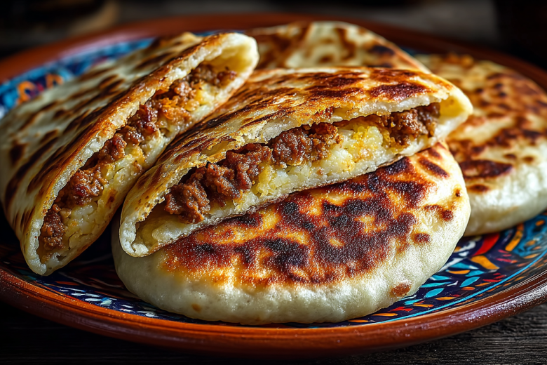 Для приготовления вам понадобится: для теста — 500 г муки, 250 мл теплой воды, 1 чайная ложка соли, 2 столовые ложки оливкового масла; для начинки — 3 картофелины, 300 г мясного фарша, 1 луковица, соль, перец, орегано. Картофель отварите и разомните в пюре. Лук обжарьте с фаршем, посолите, поперчите, добавьте орегано. Смешайте картофель с фаршем. Замесите эластичное тесто, дайте отдохнуть 20 минут. Разделите на шарики, раскатайте лепешки, выложите начинку, защипните края. Обжарьте на сухой сковороде с двух сторон до румяной корочки. Подавайте горячими.