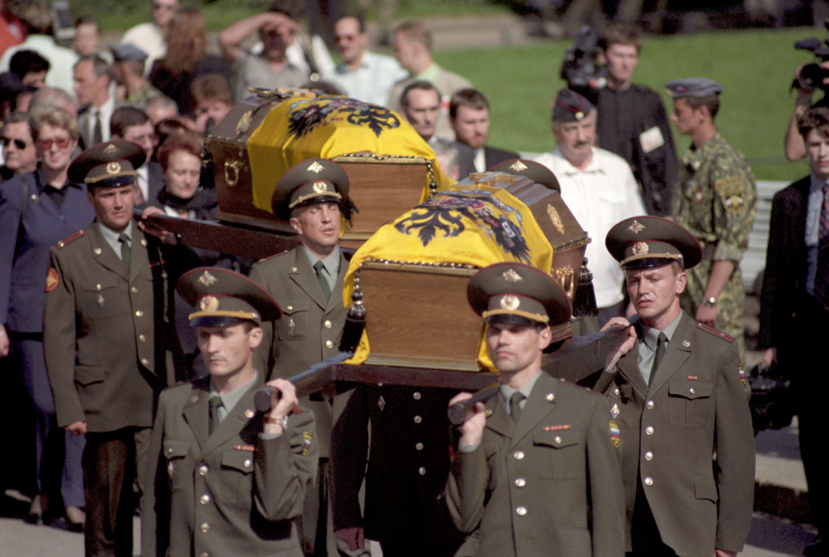 Траурная церемония захоронения останков последнего российского императора, членов его семьи и слуг в Петропавловском соборе Санкт-Петербурга Траурная церемония захоронения останков последнего российского императора, членов его семьи и слуг в Петропавловском соборе Санкт-Петербурга Фото: Сергей Компанийченко/РИА Новости