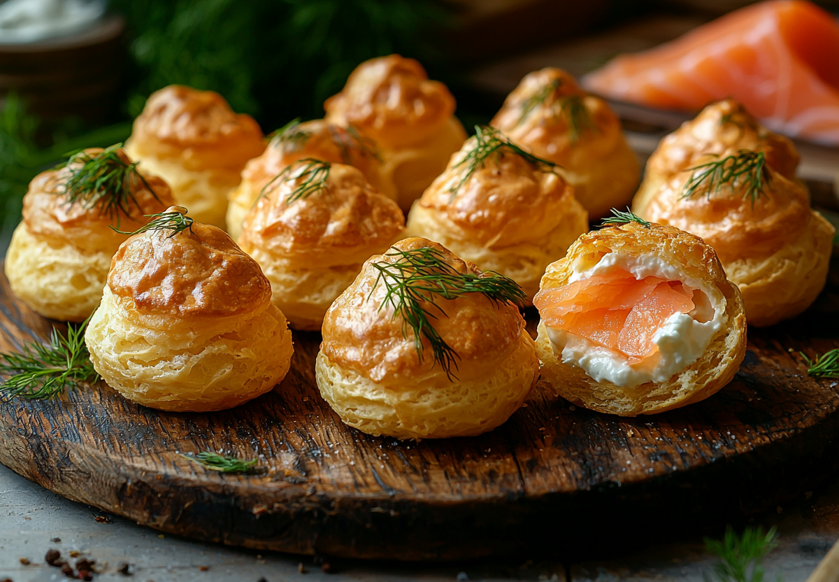 Профитроли с семгой и сыром! Хрустящие облачка с рыбной начинкой