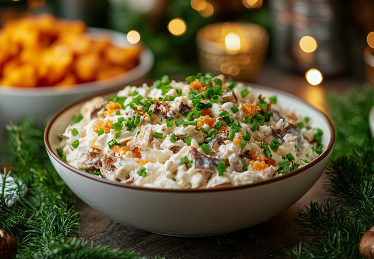 Вкус получается насыщенным, с дымными нотами копченой рыбы и ароматом грибов, которые связывает сливочная заправка. Это блюдо гарантированно станет хитом любого застолья.