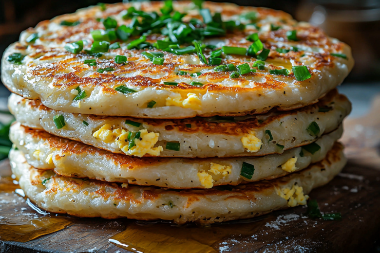 Беру творог, яйца и зеленый лук — и готовлю румяные ароматные лепешки прямо на сковороде. Это гениально простое и невероятно вкусное блюдо, идеальное для быстрого завтрака или сытного перекуса.