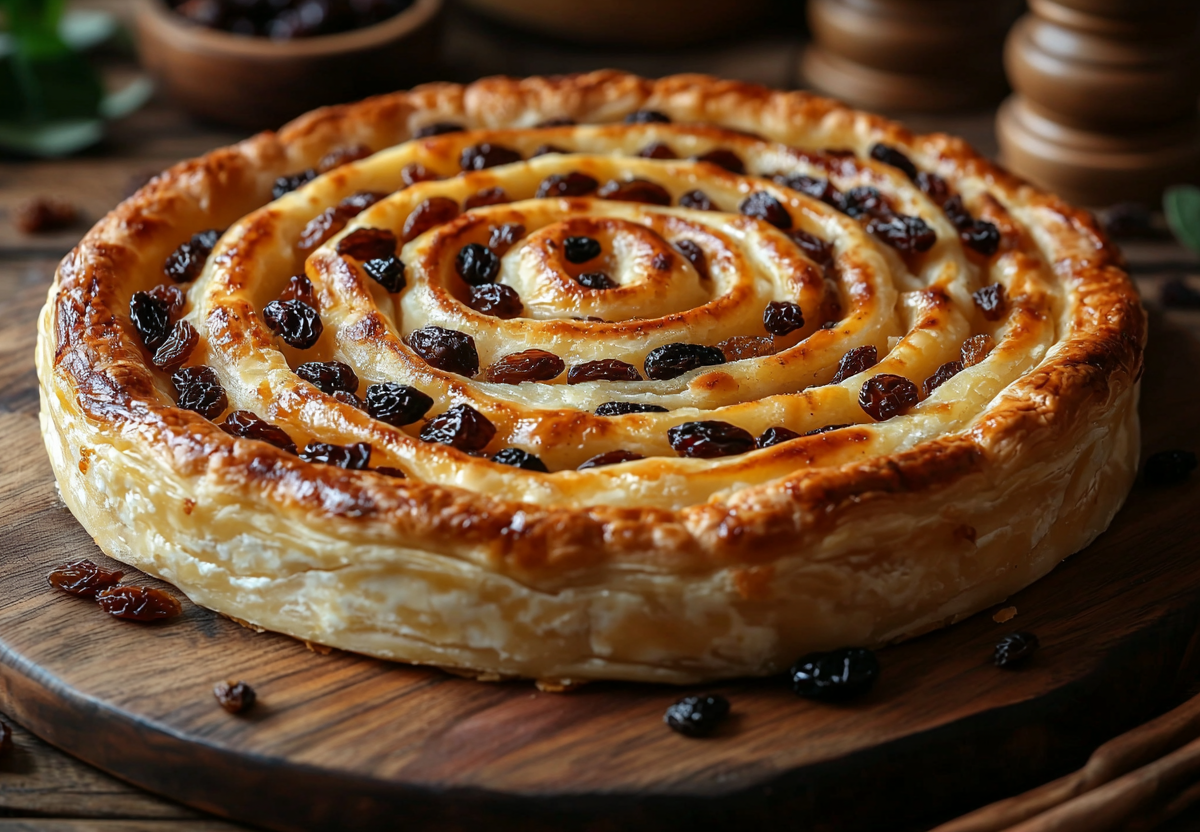 Пирог-улитка из лаваша с творогом и изюмом — это нежная ароматная выпечка с хрустящей корочкой и сладкой начинкой! Сочетание воздушного творога, сочного изюма и тонкого лаваша создает восхитительный контраст текстур.