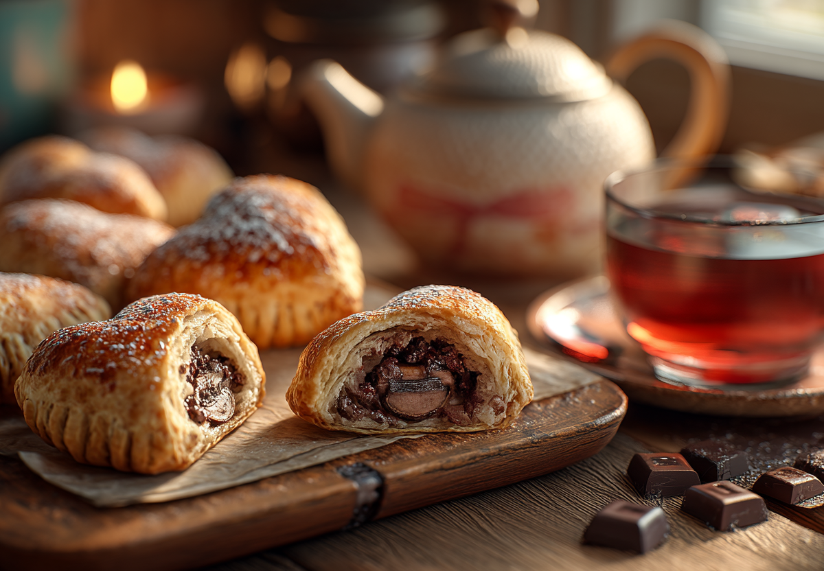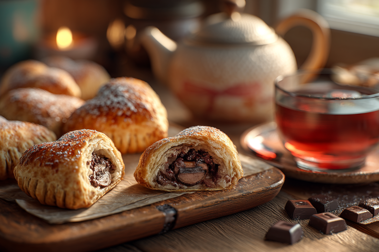 При выпекании слоеное тесто превращается в невесомые, хрустящие и рассыпчатые слои, а внутри него шоколад плавится в гладкий, ароматный крем, а банан карамелизуется и добавляет нежную ноту.