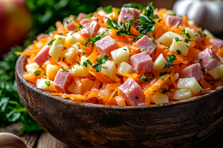 Простой салат без варки: смешала ветчину с одним необычным ингредиентом — идеально и на праздник, и к ужину. Этот салат — идеальный баланс пикантной ветчины, сочного яблока и нежного сыра. Готовится за считаные минуты из самых простых продуктов, а его свежий, запоминающийся вкус точно найдет своих поклонников.