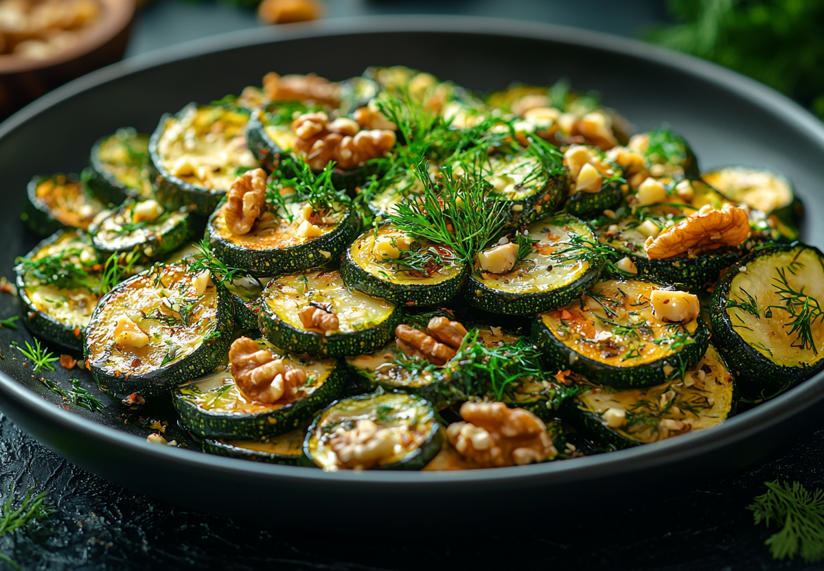 Простой салат с запеченным кабачком и грецкими орехами! Семью за уши не оттащишь, а я еще и похудела на нем. Лёгкий, ароматный и невероятно вкусный — этот летний салат станет идеальным дополнением к любому блюду или самостоятельной полезной закуской. Нежные обжаренные кабачки в сочетании с хрустящими грецкими орехами и свежей зеленью создают гармоничный вкусовой букет. А чесночная нотка и оливковое масло придают блюду особую пикантность!