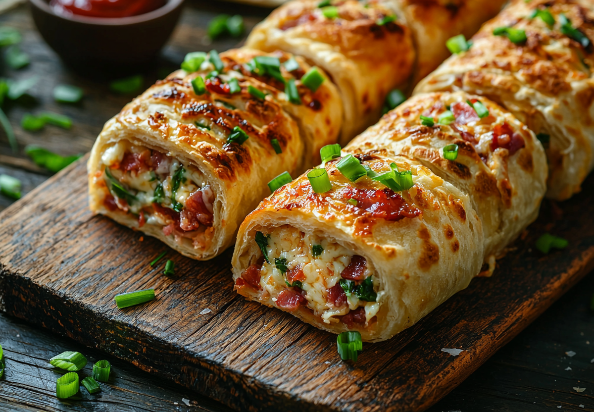 Вкус и текстура этих рулетиков — идеальный баланс. Снаружи — тонкий, хрустящий, почти слоеный лаваш. Внутри — солоноватый упругий бекон и тягучий нежный сыр, который успевает расплавиться в горячем «коконе». Сочетание, от которого невозможно оторваться.
