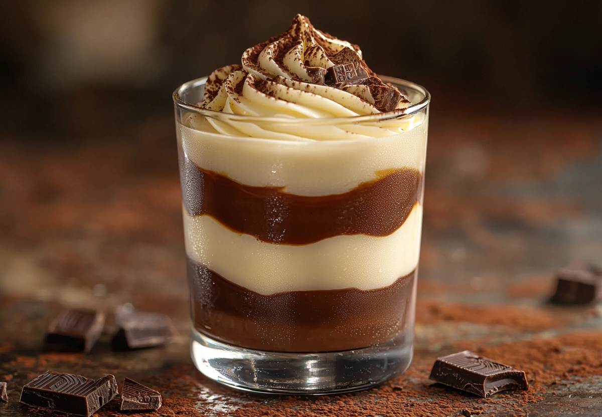 Пудинг «Зебра» с ванилью и какао! Простой десерт без выпечки, а результат как в кафе. Ванильно-шоколадный пудинг — десерт, который легко приготовить дома из самых обычных ингредиентов. Две текстуры, два вкуса, один стакан — выглядит красиво. Можно легко подать гостям!