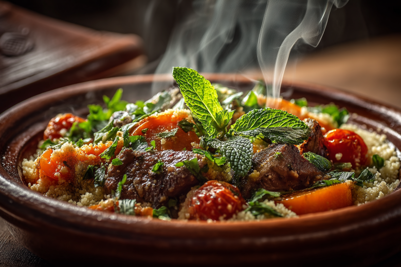 Не нужно специальной посуды или навыков. Готовый кускус запаривается кипятком, а баранина и овощи готовятся параллельно на двух сковородах. Результат — сбалансированное, яркое блюдо для ужина в восточном стиле.