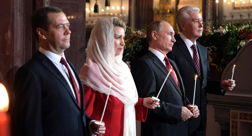 Президент по многолетней традиции на Пасху посещает богослужение в храме Христа Спасителя, рождество Владимир Путин встречает за пределами столицы в других церквях. Глава государства только однажды не был на пасхальном богослужении в столице — в 2003 году, когда президент был с официальным визитом в Таджикистане. Путин тогда принял участие в богослужении, которое проходило в храме Николая Святителя в Душанбе.