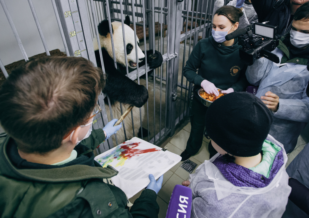 Саша побывал в ветеринарной клинике, вход в которую закрыт для обычных посетителей, и даже создал уникальную футболку: вместе с пандой Жуи они нанесли на изделие принты красками, — сказано в пресс-релизе.