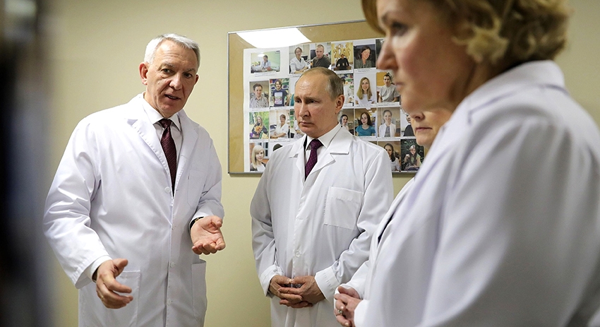 Руководитель центра Александр Ткаченко показал гостю палаты, реанимационное отделение, игровую комнату и праздничную столовую. В больнице также есть молельная комната для представителей всех конфессий, где глава РФ зажёг свечку.