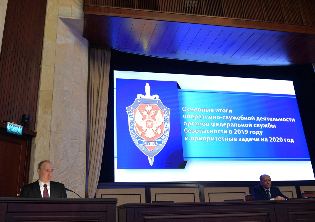 Российский президент Владимир Путин выступил на коллегии ФСБ. Во время мероприятия произошёл сбой.