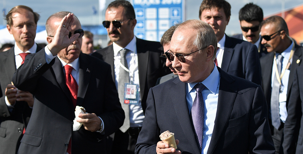 Президент Турции Реджеп Тайип Эрдоган распробовал российское мороженое. Холодным лакомством его угостил российский лидер Владимир Путин в ходе посещения авиасалона МАКС в Жуковском.
