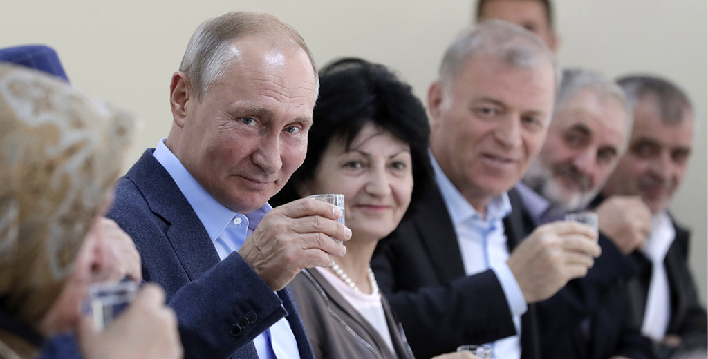 Президент Владимир Путин во время своего визита в Дагестан выпил рюмку водки. Он обещал сделать это в 1999 году, когда приезжал в регион и отставил предложенную тогда стопку.