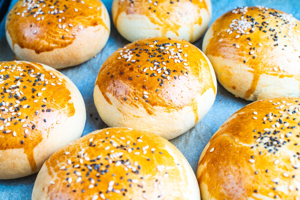 Начните с замешивания теста: соедините кефир, сахар, соль, яйцо и соду, затем постепенно вводите муку. Пока тесто отдыхает, приготовьте начинку — мелко нарежьте лук, перец и зелень, смешайте с фаршем, добавьте воду, специи и соль. Разделите тесто на части, раскатайте, выложите начинку и сформируйте пышки, придав им плоскую форму. Сделайте надрезы, смажьте желтково‑молочной смесью, посыпьте кунжутом и выпекайте 20 минут при 190 градусах. Готово — можно звать всех к столу!
