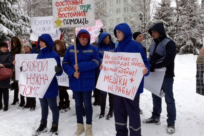 По словам главы первичного отделения профсоюза медработников «Действие» Сергея Комлева, вместо 170 бригад в городе работают только 130. В связи с этим работникам приходится брать на себя дополнительную нагрузку и буквально жить на работе. При этом их оклад не соответствует количеству отработанных часов. В частности, фельдшеры получают менее 30 тысяч рублей.