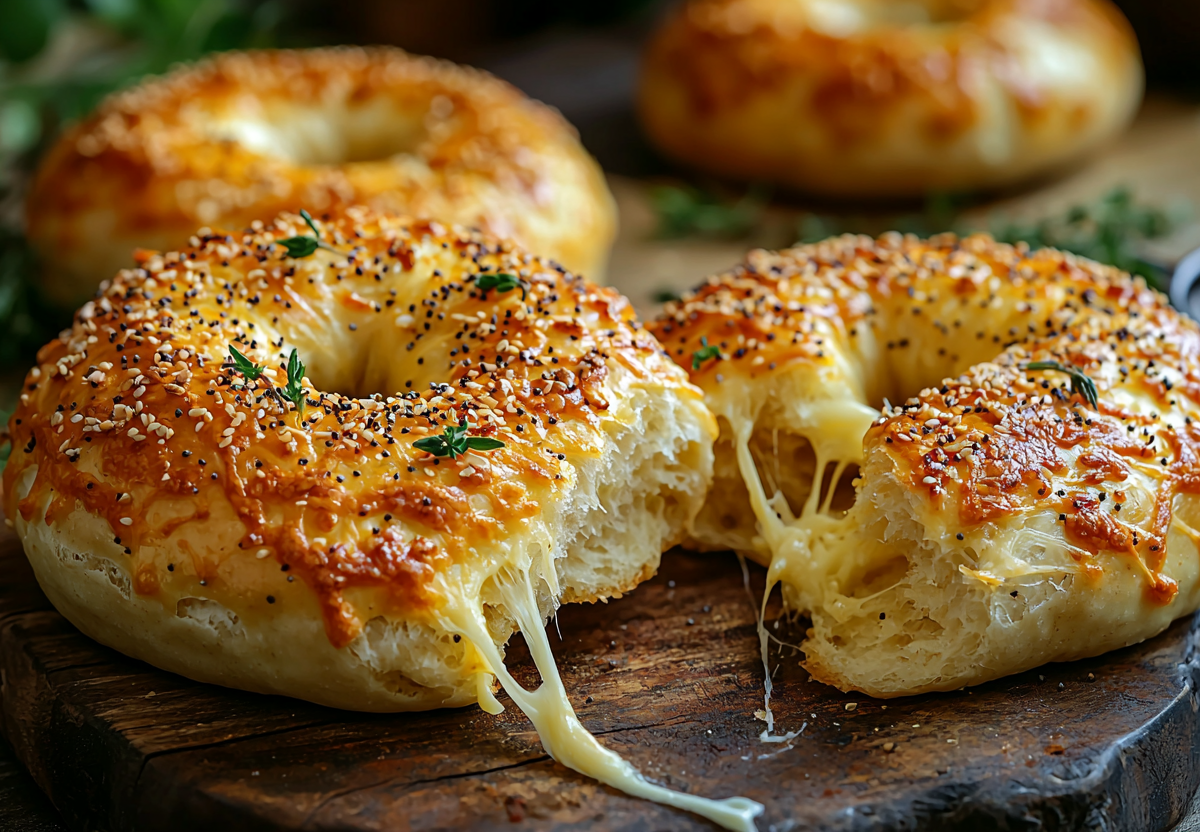 Ароматные сырные бейглы домашнего приготовления — это идеальный завтрак или перекус, который покорит вас хрустящей золотистой корочкой снаружи и нежной воздушной текстурой внутри.
