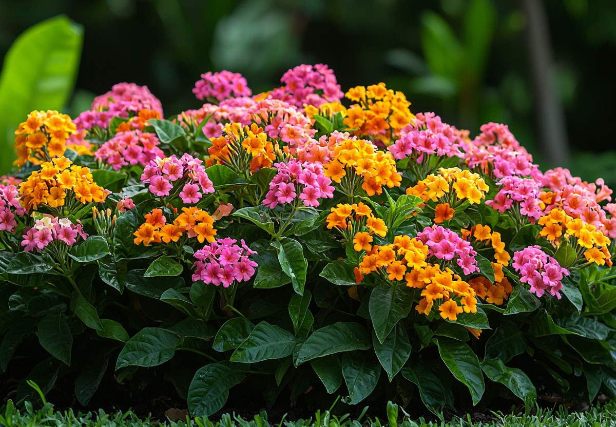 Лантана — это удивительное растение-хамелеон с меняющими цвет бутонами по мере распускания. На одном кусте одновременно можно увидеть бутоны желтого, розового, оранжевого и малинового оттенков.