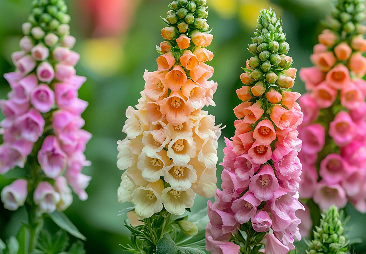Наперстянка — идеальное решение для проблемных участков сада, где другие цветы отказываются расти. Она образует высокие свечи-соцветия (до 1,5–2 метров) с множеством колокольчатых цветков белого, розового, пурпурного или кремового оттенков. Ее жесткие цветоносы устойчивы к полеганию даже при сильных порывах ветра, а восковой налет на листьях защищает от излишней влаги.