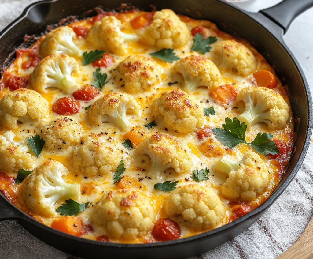 Разбираю на соцветия цветную капусту, заливаю сырным кремом — и в духовку прямо в сковороде. Это гениально простое и невероятно вкусное блюдо, идеальное для полезного ужина или изысканного гарнира.