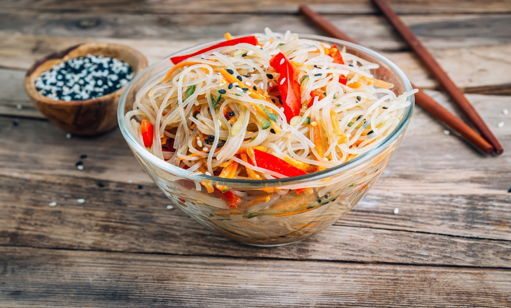 Фунчоза с овощами — один из самых простых рецептов для похудения. Она получается вкусной, полезной и не вредит фигуре — всего 154 ккал на 100 г.