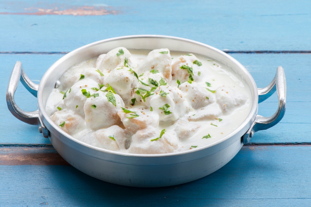 Для приготовления возьмите 400 г говядины, 200 г сметаны, два зубчика чеснока, острый перец по вкусу, 30 г кинзы, соль по вкусу и 0,5 чайной ложки хмели-сунели.