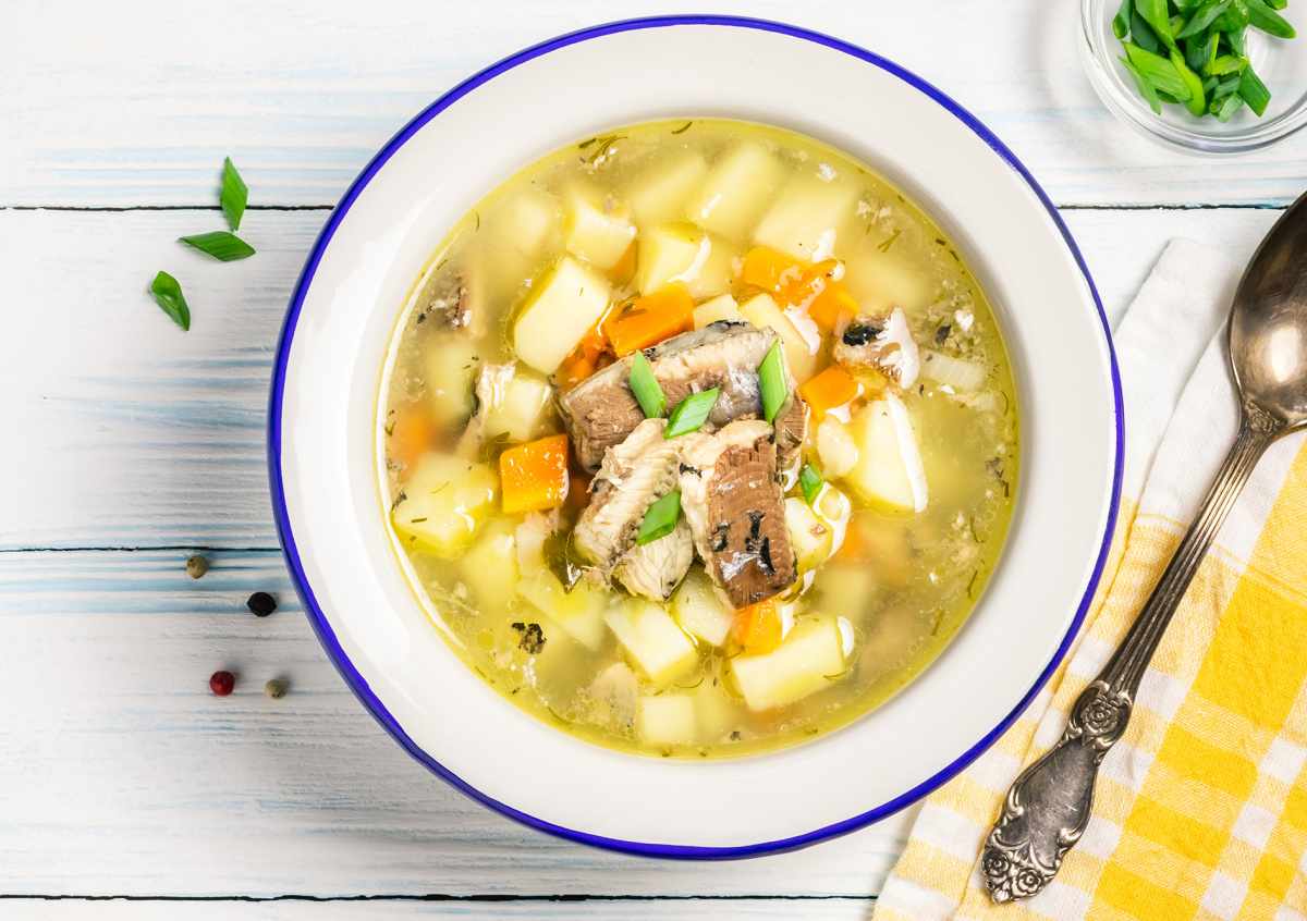 Простой рецепт супа из рыбных консервов. Готовится быстро, получается вкусно и не вредит фигуре.