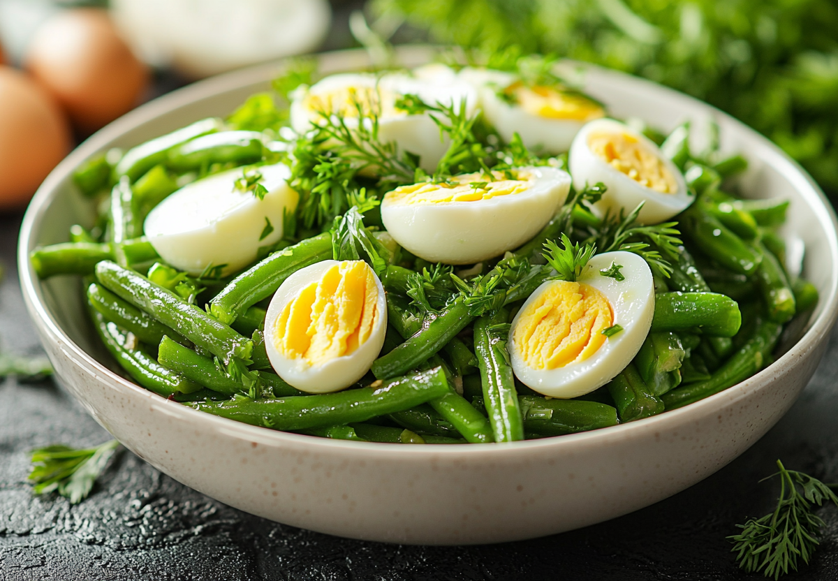 Рецепт для похудения! Салат из зеленой фасоли и яиц — 3 ингредиента и 5 минут. Когда нужно приготовить что-то легкое, полезное и сытное, этот рецепт станет настоящей палочкой-выручалочкой. Минимум калорий — максимум пользы: зеленая фасоль богата клетчаткой, а яйца дают качественный белок. Идеальный вариант для ужина или полезного перекуса!