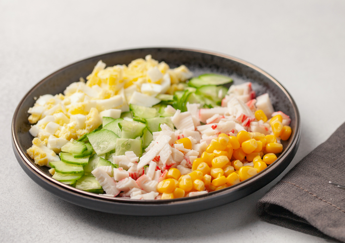 Салат с крабовыми палочками и кукурузой — закуска, покоряющая нежным сочетанием ингредиентов. Но заправка из майонеза достаточно калорийная. Если вы следите за фигурой, эта статья — для вас. Приводим рецепт для похудения — достойную альтернативу любимому салату.