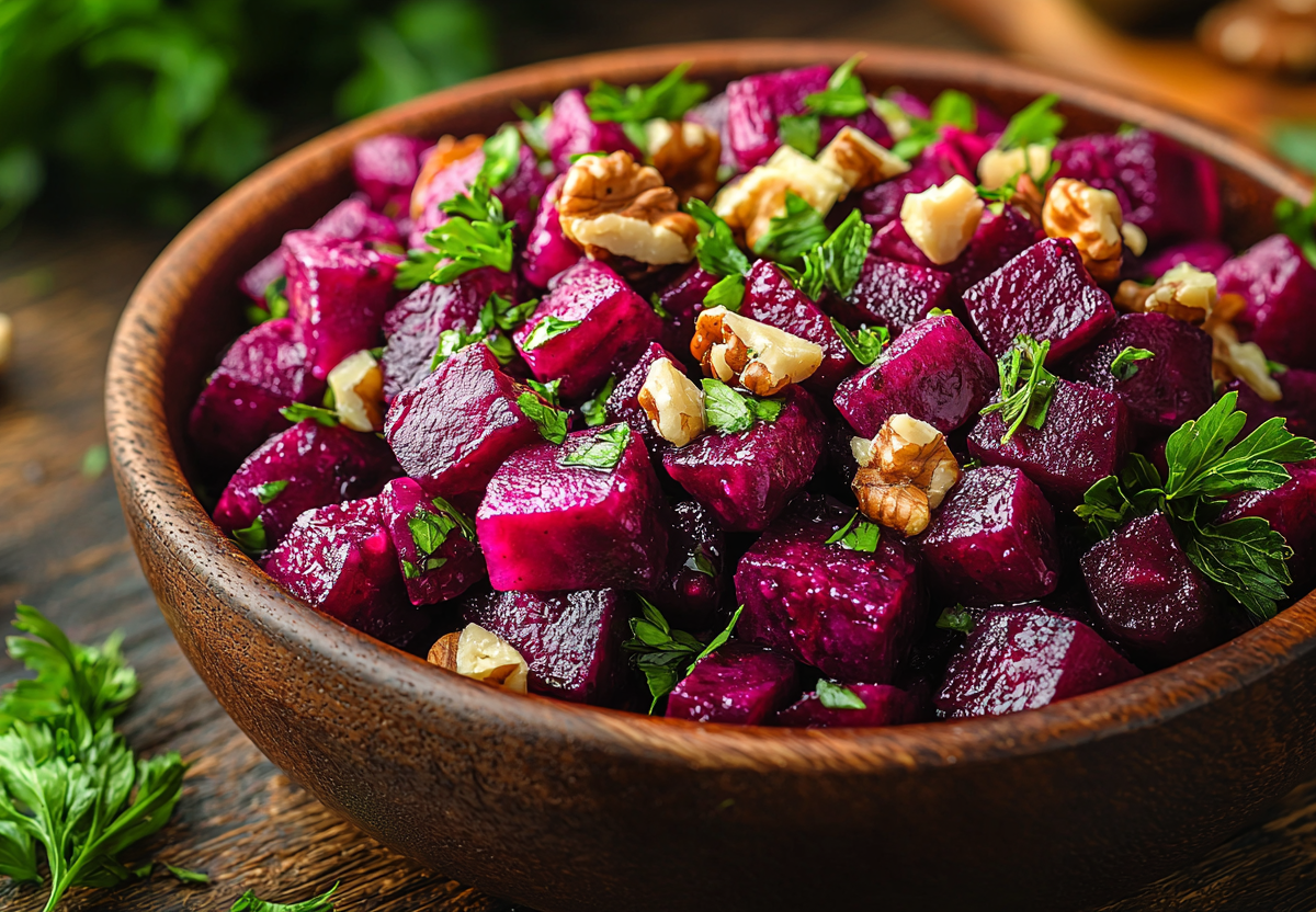 Салат со свеклой и орехами отлично впишется в ваш ужин, если вы хотите похудеть. Он получится вкусным, легким и не навредит фигуре — всего 80 ккал на 100 г.